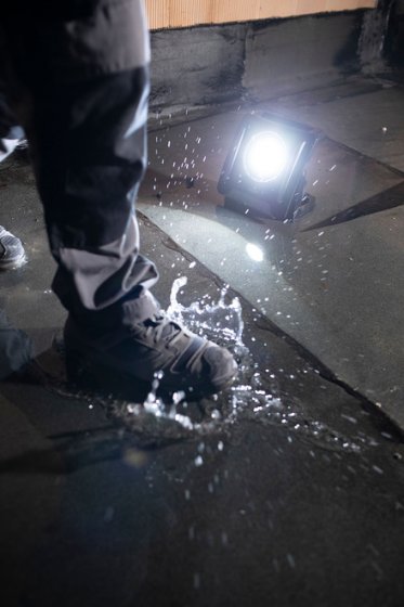 - Lampe de chantier LED avec technologie hybride fonctionnant sur batterie et sur secteur : en cas de coupure de courant, l’alimentation passe automatiquement en mode batterie – IP65 avec capot monté