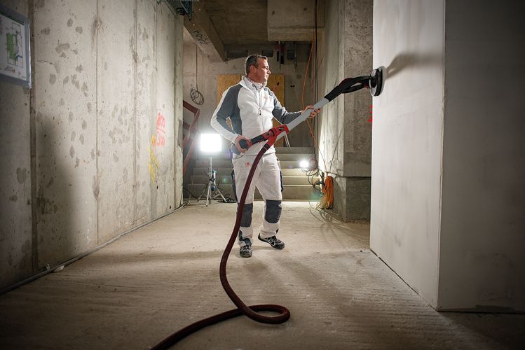 - Tête de ponçage reposant sur un cardan assure une flexibilité élevée et une adaptation optimale lors du ponçage de murs et de plafonds.