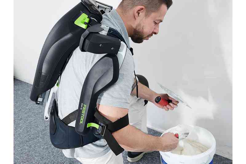 Festool vous présente le premier exosquelette actif pour faciliter le travail bras levés, même au dessus de la tête.